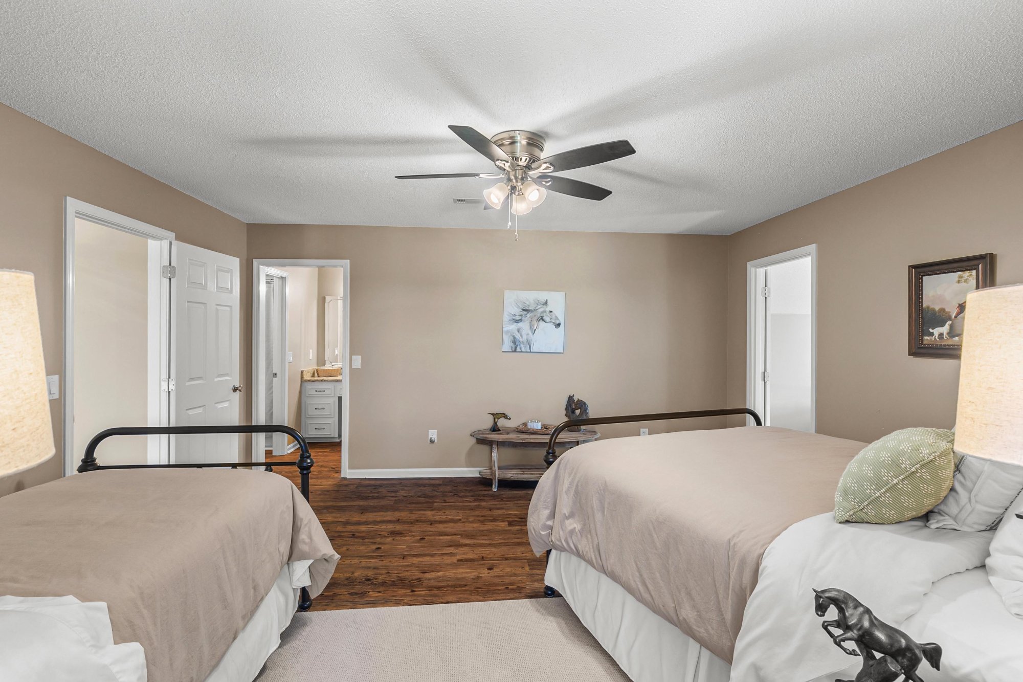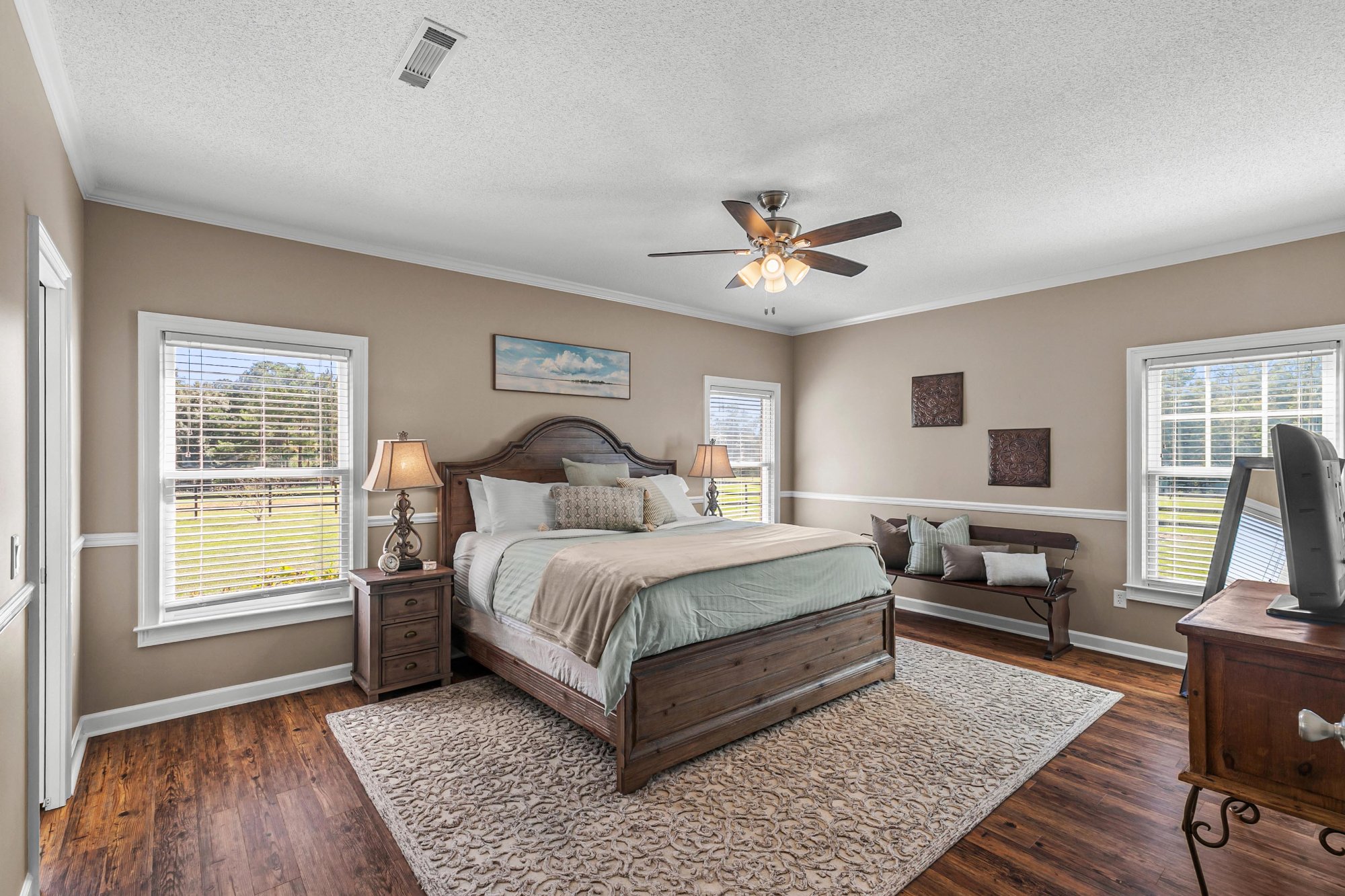 Every surface has been intentionally updated. Fresh paint throughout. All new lighting and ceiling fans. Durable luxury vinyl plank flooring on every level — designed for real life with dogs, muddy boots, and all the beautiful mess that comes with country living. No carpet. No fuss.